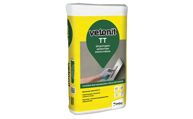 Штукатурка водостойкая, морозостойкая на цементной основе для предварительного выравнивания стен и потолков внутри помещений и стен снаружи зданий и сооружений weber.vetonit TT.