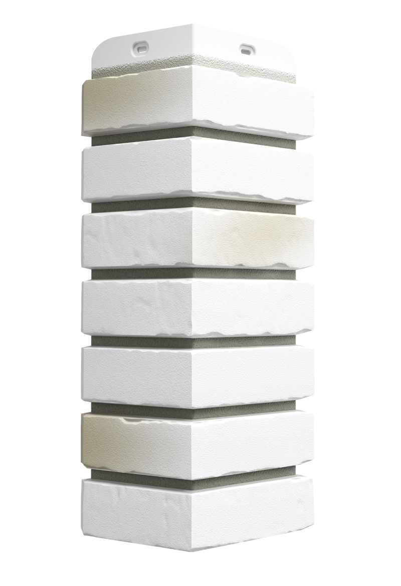 Углы «монте» — идеальное дополнение для фасадных панелей с имитацией кладки из белого клинкерного кирпича. Плавный переход цвета от уютного бежевого к натуральному доломитовому оттенку сделает стык панели и угла практически незаметным.